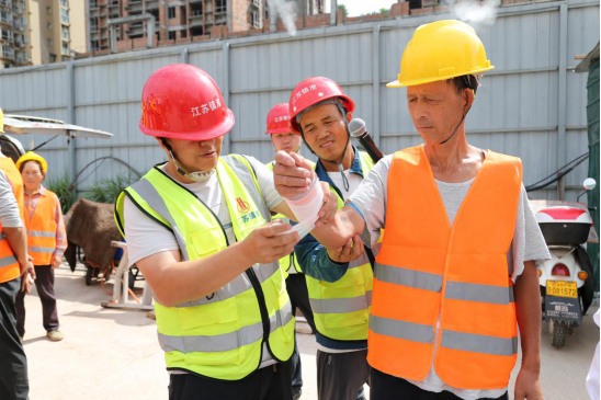 啟動儀式結(jié)束后,項目部工作人員迅速開展聯(lián)合應急演練,模擬火災、高處墜落等工地典型突發(fā)場景。演練中,現(xiàn)場示范滅火器的操作規(guī)范,講解使用要點,并組織人員進行實操訓練,確保人人掌握滅火技能;隨后開展急救包扎演示教學,切實提升人員應急救護技能。