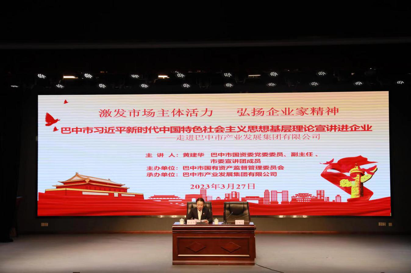 2023年3月27日,巴中市國資委以“激發(fā)市場主體活力 弘揚企業(yè)家精神”為主題,開展習近平新時代中國特色社會主義思想基層理論宣講進企業(yè)活動,市國資委黨委委員、副主任黃建華深入市產(chǎn)業(yè)集團二級企業(yè)自然資源集團,為全體干部職工作黨的二十大精神宣講報告,市產(chǎn)業(yè)集團領(lǐng)導班子、自然資源集團全體員工聆聽宣講。